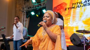 SIFAX Thanksgiving : Another guest artiste, Titilayo Gbadebo (EyinjuJesu Ministry), during her ministration at the maiden edition of the SIFAX Group Annual Thanksgiving held at the Lagos Marriott Hotel recently.