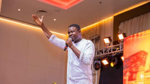 SIFAX Thanksgiving : Chigozie Wisdom during his ministration at the maiden edition of the SIFAX Group Annual Thanksgiving held at the Lagos Marriott Hotel recently.