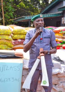 include 2,002 bags of smuggled rice weighing 50kg each, 6,180 pieces of cutlasses,