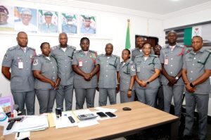 Other officers present at the event include Assistant Comptroller of Enforcement, UB Agomuo, Secretary to the Customs Area Controller, Chief Superintendent of Customs, Oben Ihekuama,