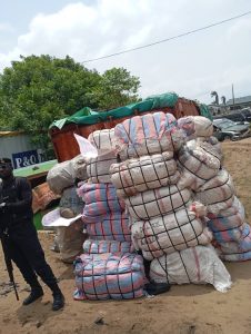 “Others are; one thousand, eight hundred and nine (1,809) bags of foreign parboiled rice (50kg each), seventeen (17) sacks of used shoes, fifty-six (56) bales of used clothes and two hundred and three (203) pieces of used tyres.