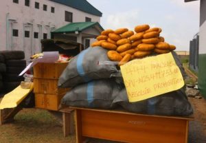 “The Command within the period under review, has seized the following items; four hundred and forty-four (444) parcels of Cannabis Sativa (Marijuana), one hundred and eighty-one (181) packs of Tramadol, six hundred (600) bottles of Codeine Syrup (100ml each) and two hundred and forty (240) kegs of Petroleum Motor Spirit (PMS).