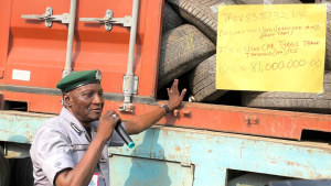 Other notable seizures include 1X40FT container with container number TRHU 83907321 fully loaded with used tyres, 1X20FT with container number ONEU241369 containing medicaments. Others are 2X40FT with containers numbers MSKU 4796036, MAEU 9205708, and one truck with container body conveying used fridges, foreign supermarket items and used clothes . All the containers were wrongly declared to invade duties.