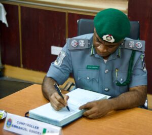 Speaking during the visit, Comptroller Oshoba outlined the Comptroller-General’s three policy thrusts, highlighting the need for consolidation, collaboration, and innovation. He emphasized that modern border management requires agencies to work together, citing Customs’ critical security role alongside trade facilitation and revenue generation. “To achieve this mandate, we must collaborate with the military, the mother of security,” he said, adding that innovation involves strengthening inter-agency cooperation for better results.